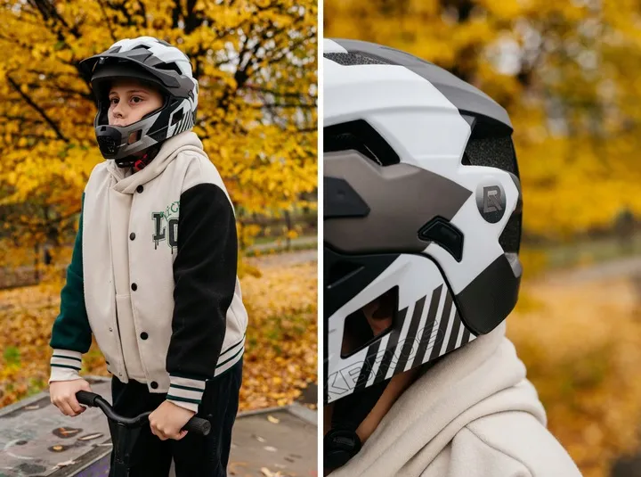 Ten regulowany kask rowerowy ROCKBROS model 10110061002 dla dzieci wyróżnia się solidną konstrukcją i przemyślanymi detalami, które gwarantują niezawodną ochronę. Zdejmowana osłona podbródka pozwala na elastyczne użycie jako pełny kask lub półkask, zapewniając kompleksową ochronę głowy i szczęki w każdej sytuacji.